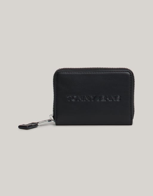 Tommy Jeans – Essential – Geldbörse in Schwarz mit Metall-Logo und umlaufendem Reißverschluss
