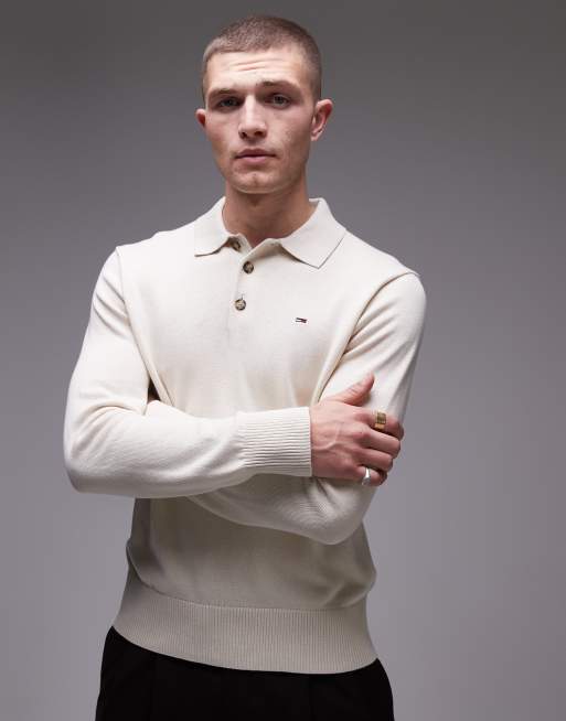 Tommy Jeans – Essential – Pullover in Beige mit Polokragen