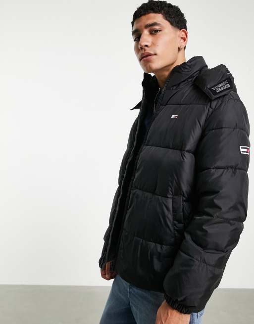 Tommy Jeans – Essential – Wattierte Kapuzenjacke in Schwarz