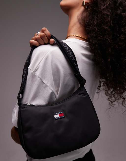 Tommy Jeans – Essentials – Schultertasche aus Nylon in Schwarz