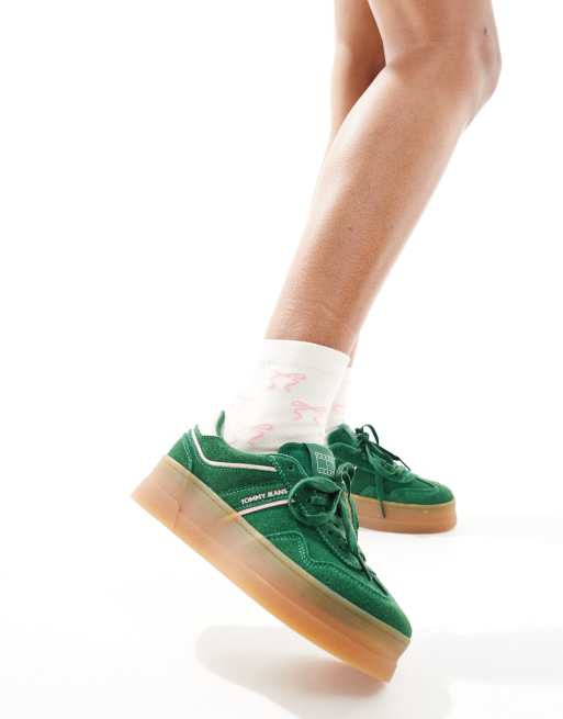 Tommy Jeans – Greenwich – Flatform Sneaker in Grün und Rosa mit Gummisohle