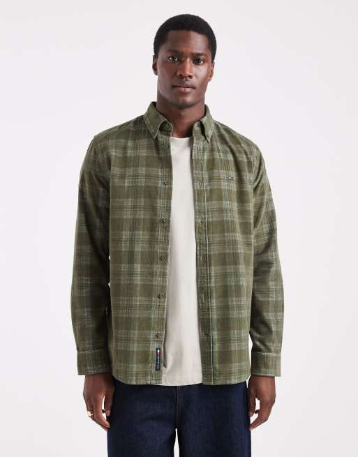 Tommy Jeans – Kariertes Hemd aus Cord in Dunkelgrün