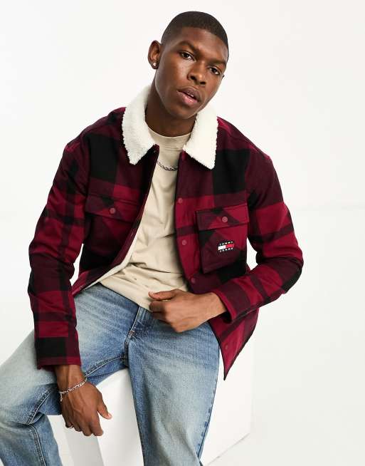 Tommy Jeans – Kariertes Hemd aus Teddystoff in Rot