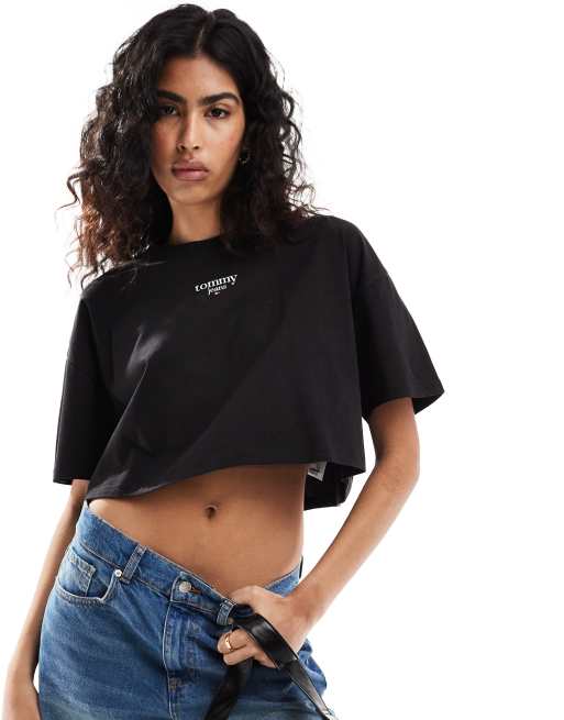 Tommy Jeans – Kurzes Oversize-T-Shirt in Schwarz mit Logo