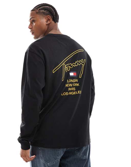 Tommy Jeans – Langärmliges T-Shirt in Schwarz mit Signatur-Rückenprint