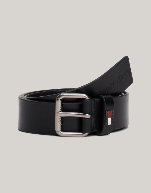Tommy Jeans – Ledergürtel in Schwarz mit Rollschnalle