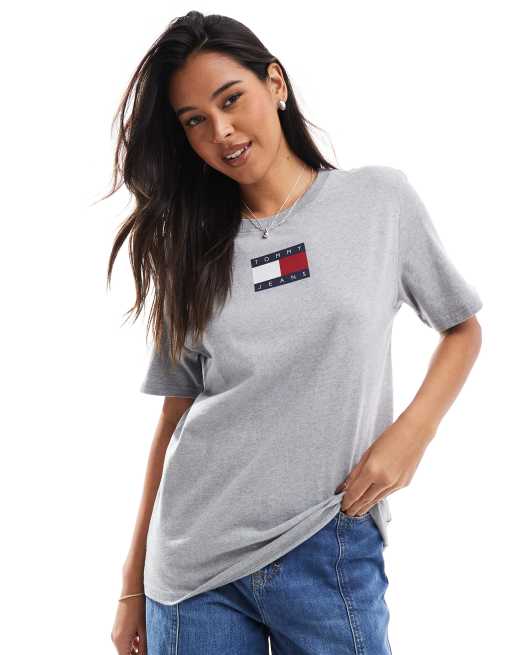 Tommy Jeans – Locker geschnittenes T-Shirt in Grau mit Logo