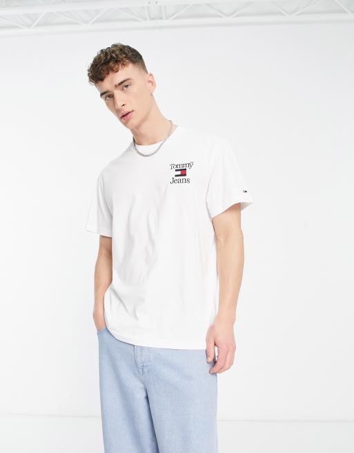 Tommy Jeans – Locker geschnittenes T-Shirt in Weiß mit Flaggen-Logo auf der Brust