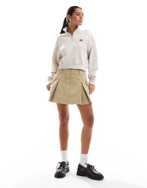 Tommy Jeans – Mini-Faltenrock in Hellbraun mit Pattentaschen