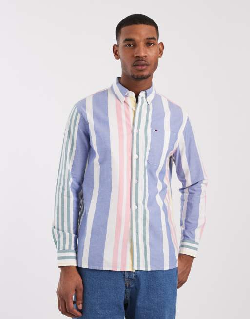 Tommy Jeans – Oxford-Hemd mit blau/grünen Streifen