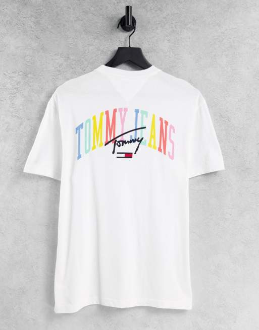 Tommy Jeans – Pastel Capsule – T-Shirt mit College-Logoprint auf dem Rücken in Weiß