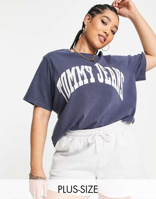 Tommy Jeans Plus – Oversize-T-Shirt aus Baumwolle in Marineblau mit College-Logo - NAVY