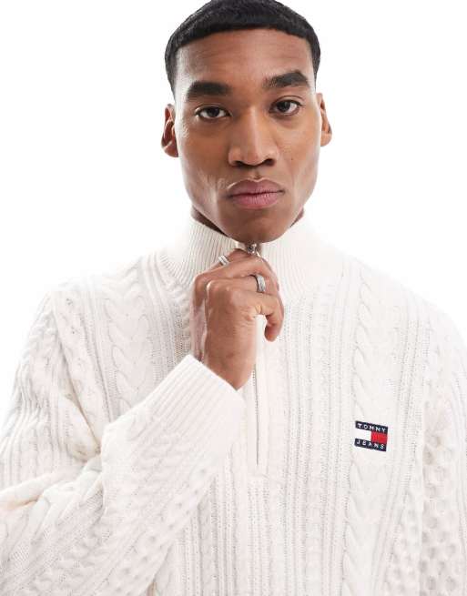 Tommy Jeans – Pullover in Weiß mit Wollanteil und kurzem Reißverschluss
