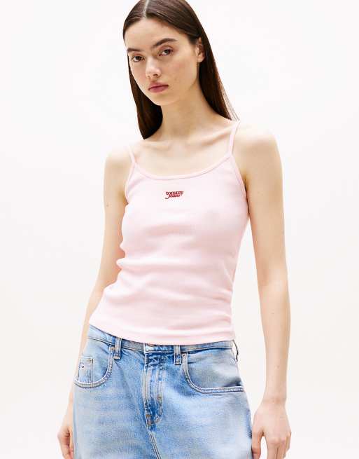 Tommy Jeans – Riemchen-Top in Hellrosa mit Schriftlogo