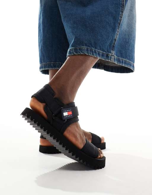 Tommy Jeans – Sandalen in Schwarz mit dicker Sohle und Aufnäher