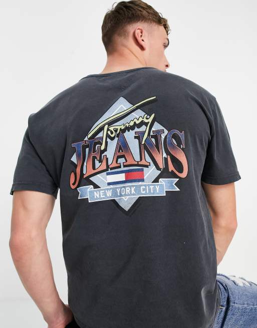 Tommy Jeans – T-Shirt in Schwarz mit rautenförmigem Logoprint auf dem Rücken