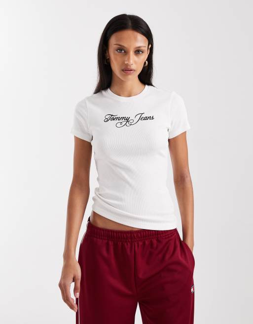 Tommy Jeans – T-Shirt in Weiß mit Schriftzug-Logo