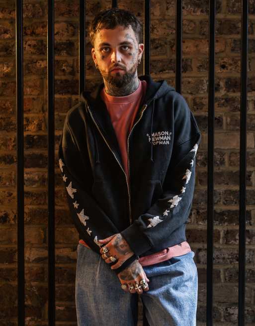 Mason Newman x Topman – Kastiger Kapuzenpullover in verwaschenem Schwarz mit Cowgirl-Print vorne und am Rücken