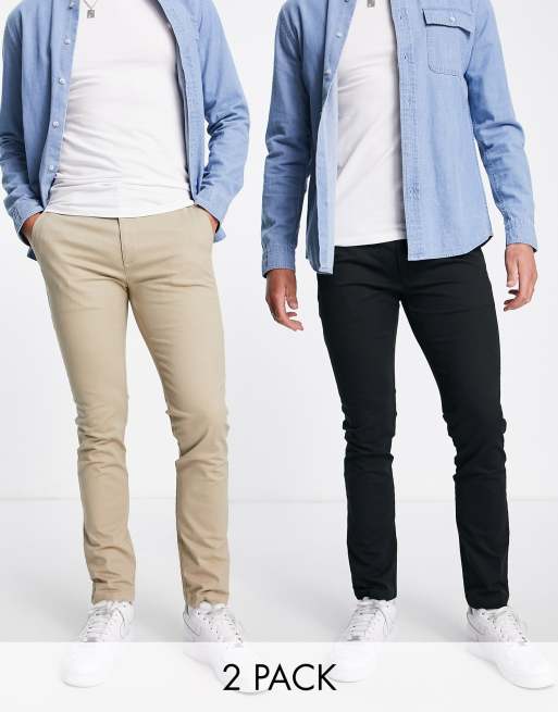Topman – 2er-Pack Skinny-Chinohosen in Schwarz und Stein