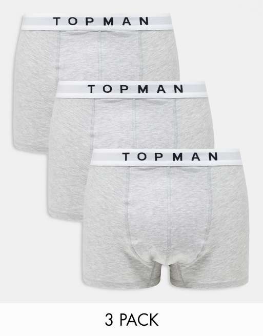 Topman – 3er-Pack Unterhosen in Grau meliert mit weißem Taillenbund