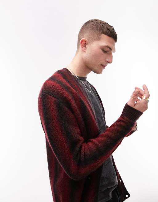 Topman – Angeraute Strickjacke in Weinrot mit Ombré-Streifenmuster