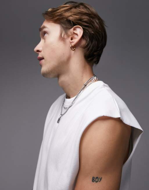 Topman – Ärmelloses Oversize-T-Shirt in Weiß