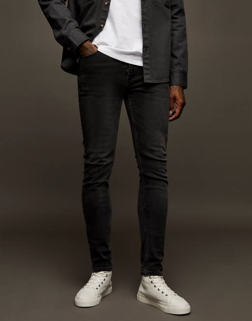 Topman – Eng geschnittene Stretchjeans in verwaschenem Schwarz
