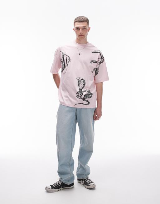 Topman – Exrem übergroßes T-Shirt in Rosa mit aufgestickten Tiermotiven