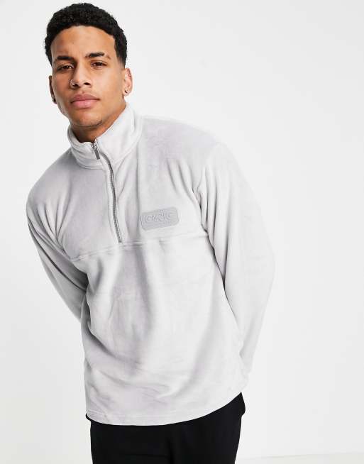 Topman – Fleece-Oberteil in Grau mit kurzem Reißverschluss