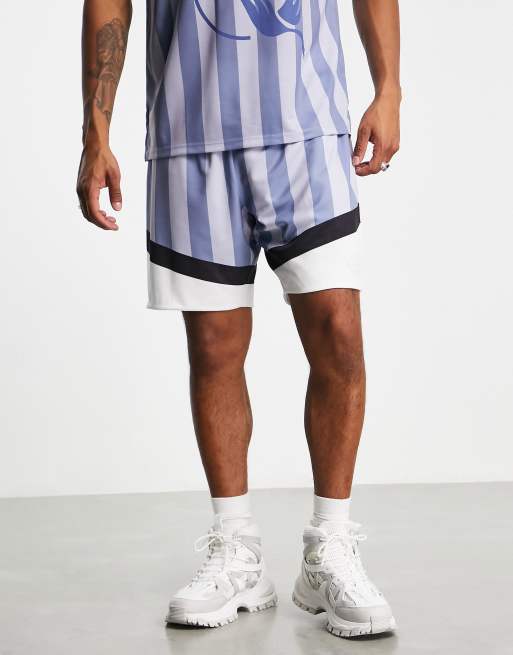 Topman – Fußball-Shorts in Blau mit Streifen, Kombiteil