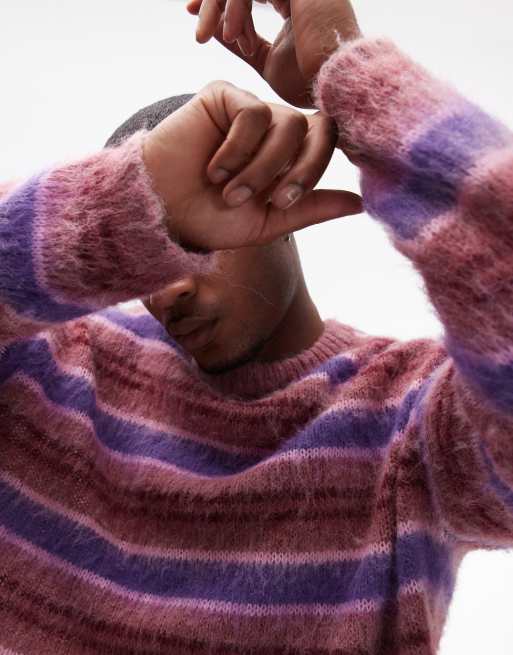 Topman – Gebürsteter Oversize-Pullover in Rosa mit Streifen