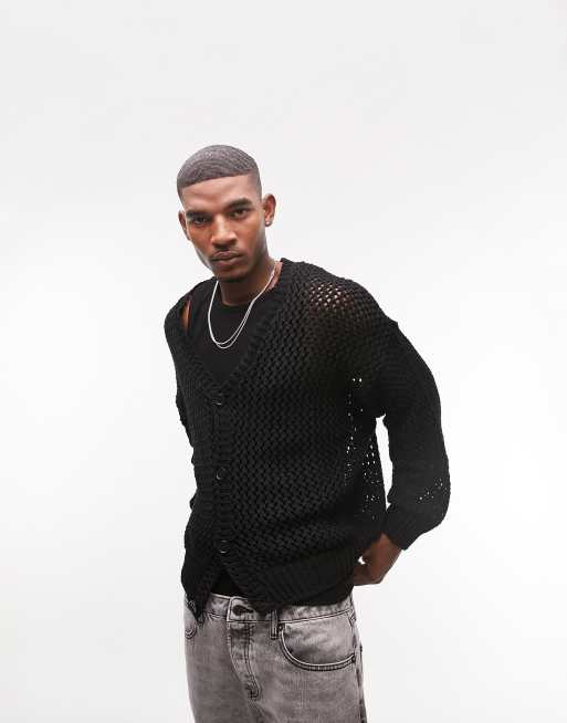 Topman – Gehäkelte Oversize-Strickjacke in Schwarz