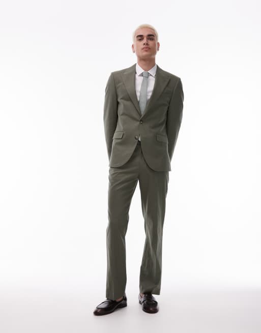 Topman – Gerade geschnittene Anzughose aus Leinenmix in Khaki