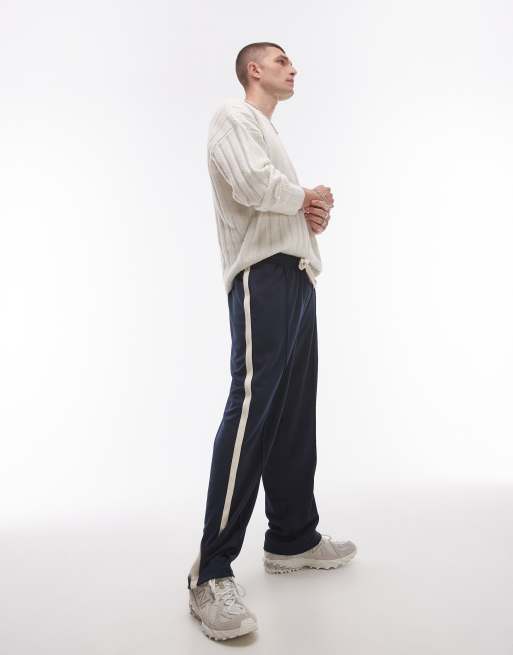 Topman – Gerade geschnittene Jogginghose in Marineblau mit Seitenstreifen