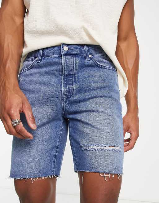 Topman – Gerade Shorts mit Zierrissen und mittlerer Waschung