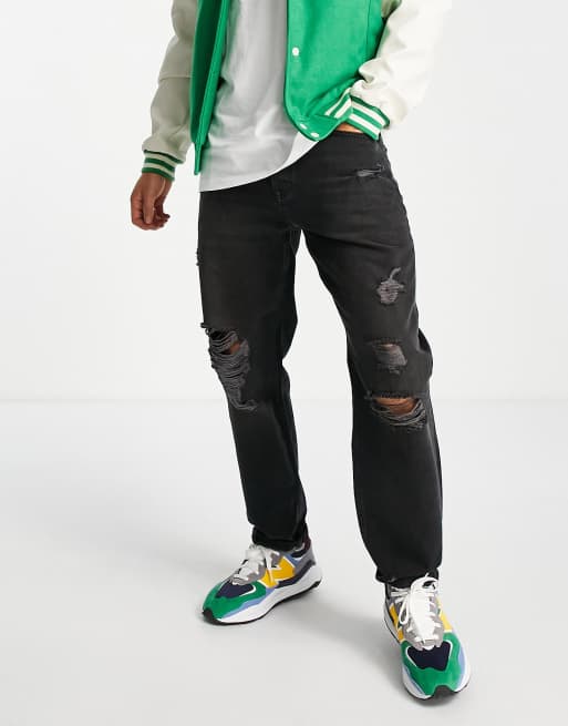 Topman – Gerippte, lässige Jeans in verwaschenem Schwarz