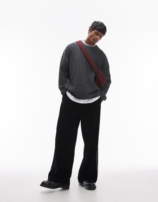 Topman – Gerippter Pullover in Anthrazit mit lockerem Schnitt
