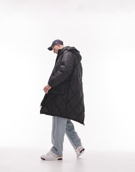 Topman – Gesteppter Oversize-Parka in Schwarz mit abnehmbarer Kapuze