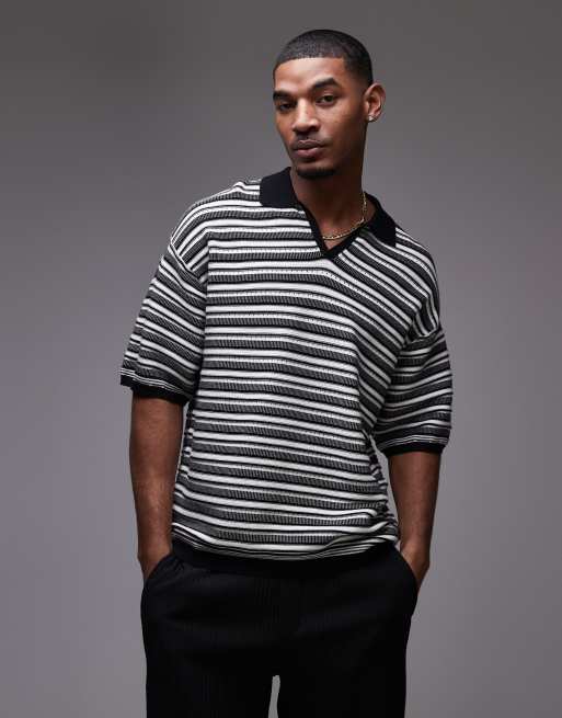Topman – Gestreiftes Polohemd aus Strick in Schwarz-Weiß