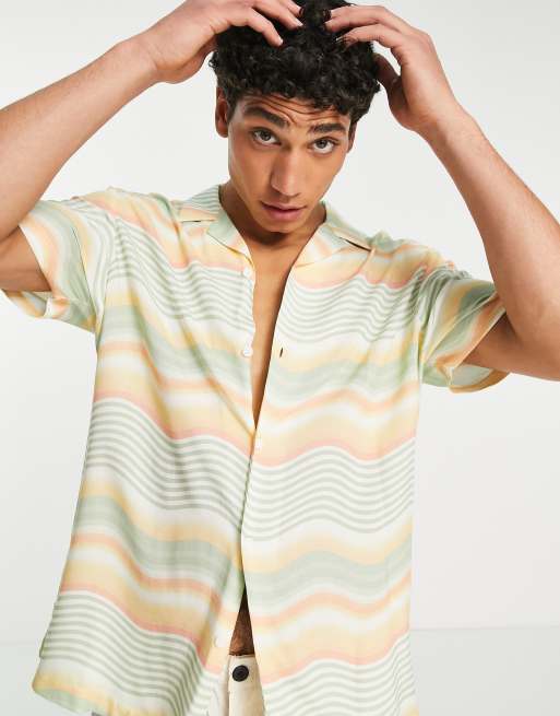 Topman – Hemd aus Viskose mit Reverskragen und horizontalem Wellenprint