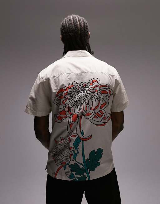 Topman – Hemd in hellem Steingrau mit Reverskragen und Blumenprint