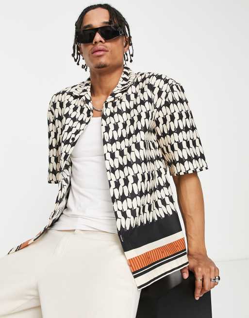 Topman – Hemd mit geometrischem Muster in Braun und Creme