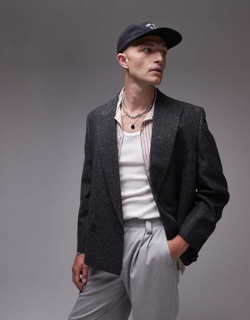 Topman – Hochwertige, kastige Wollmix-Anzugjacke in meliertem Schwarz