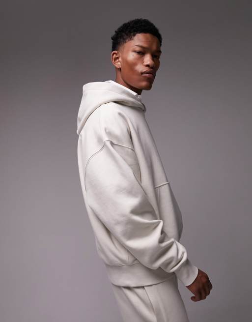 Topman – Hochwertiger, schwerer Kapuzenpullover in Ecru mit Oversize-Passform