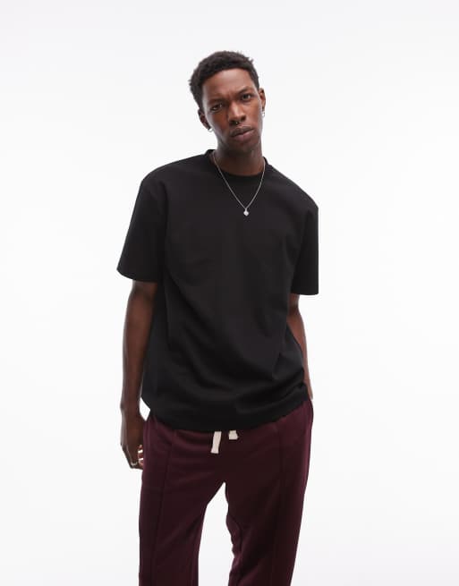 Topman – Hochwertiges Relaxed-Fit-T-Shirt in Schwarz aus schwerem Stoff, 300 g/m²
