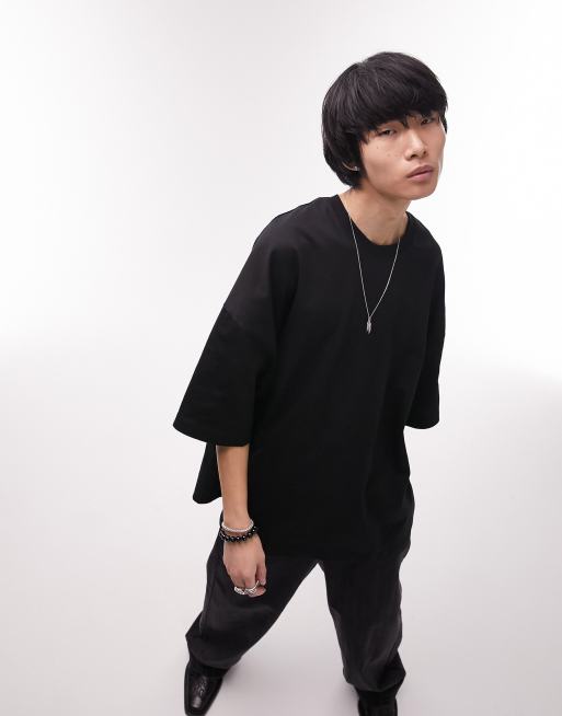 Topman – Hochwertiges T-Shirt in Schwarz mit Super-Oversize-Schnitt