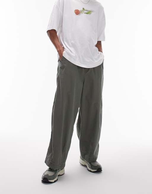 Topman – Hose in Khaki mit kurzem, weitem Beinschnitt