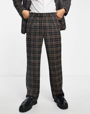 Topman – Hose mit weitem Bein in Braun kariert