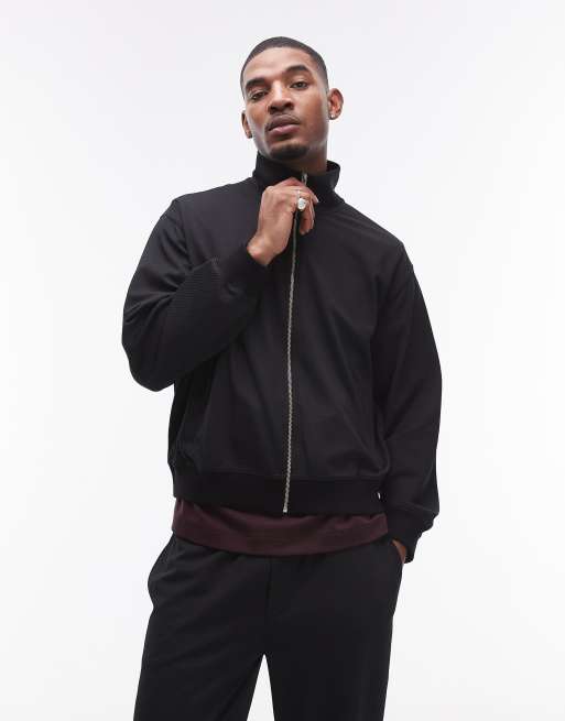 Topman – Jacke in Schwarz mit durchgehendem Reißverschluss und Micro-Waffelstruktur