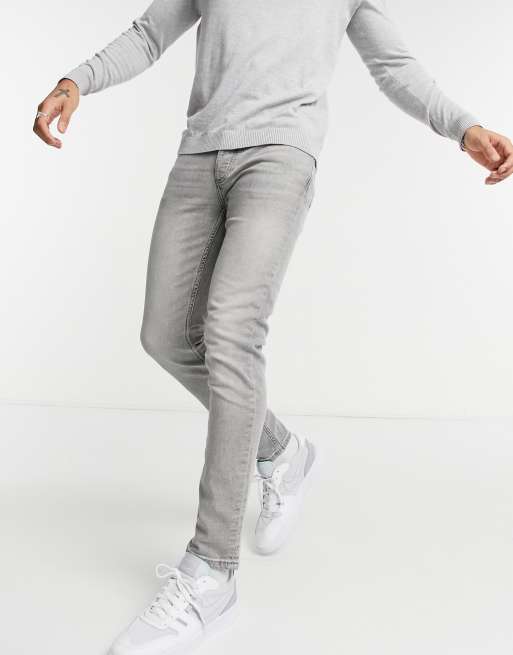 Topman – Jeans aus Baumwollmix in Grau mit engem Schnitt und Zierrissen - GREY